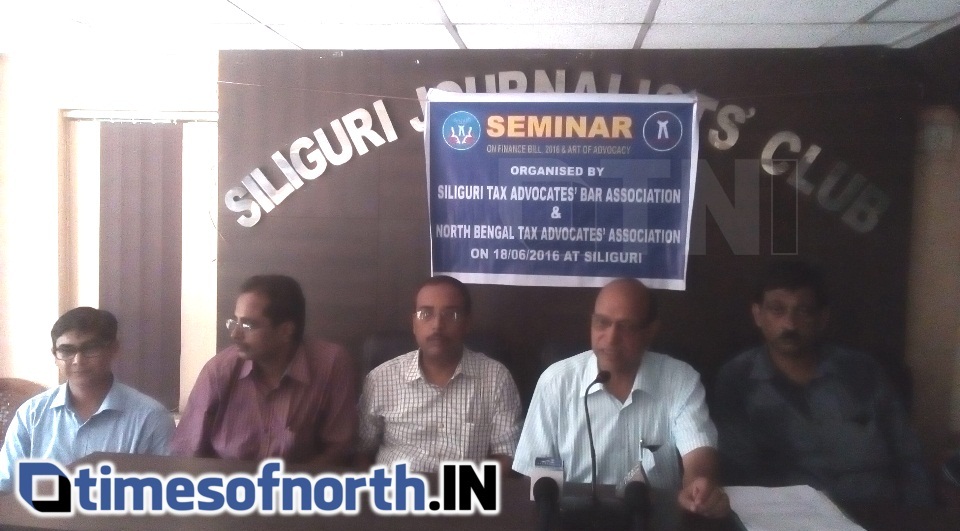 Webdesk, TNI Siliguri 15th June, 2016: Siliguri Tax Advocates Bar Association and North Bengal Tax Advocates Association today organized a press conference at Siliguri Journalist Club to inform about the upcoming Seminar on Income Tax & Service Tax on 18thJune 2016 at Hotel Dolly Inn. On behalf of both the association the dignitaries present were Mr. Sanjay Kumar, President of NBTAA, Mr. Nirmalya Chakraborty, Mr. Gajanand Agarwala, Mr. Anjan Kumar Kahali, Mr. Karan Jain. The main motive of the seminar is to educate about the new amendments in Income Tax and service tax brought in the Finance Bill 2016 tabled before the parliament by the Hon’ble Finance Minister, GOI, Mr. Arun Jaitley. In the seminar, senior advocate of Kolkata Mr. Ramesh Prasad Agarwala is expected to be one of the guest speakers. He will focus on the late amendments on direct taxes. IT advocate Mr. Arijit Chakraborty will deliver his valuable opinion on amendments made in service tax.